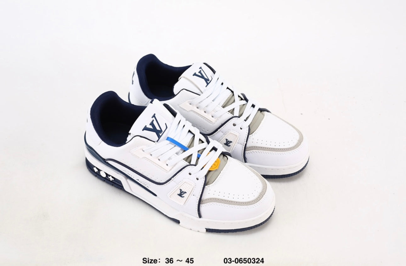 LV Trainer sneakers are a popular line of luxury sneakers by Louis Vuitton. Designed by Virgil Abloh, they often feature a mix of materials like calf leather and suede, with intricate detailing and the iconic LV monogram. Known for their sporty yet stylish design, they come in various colorways and limited editions, making them highly sought after in the fashion world.
